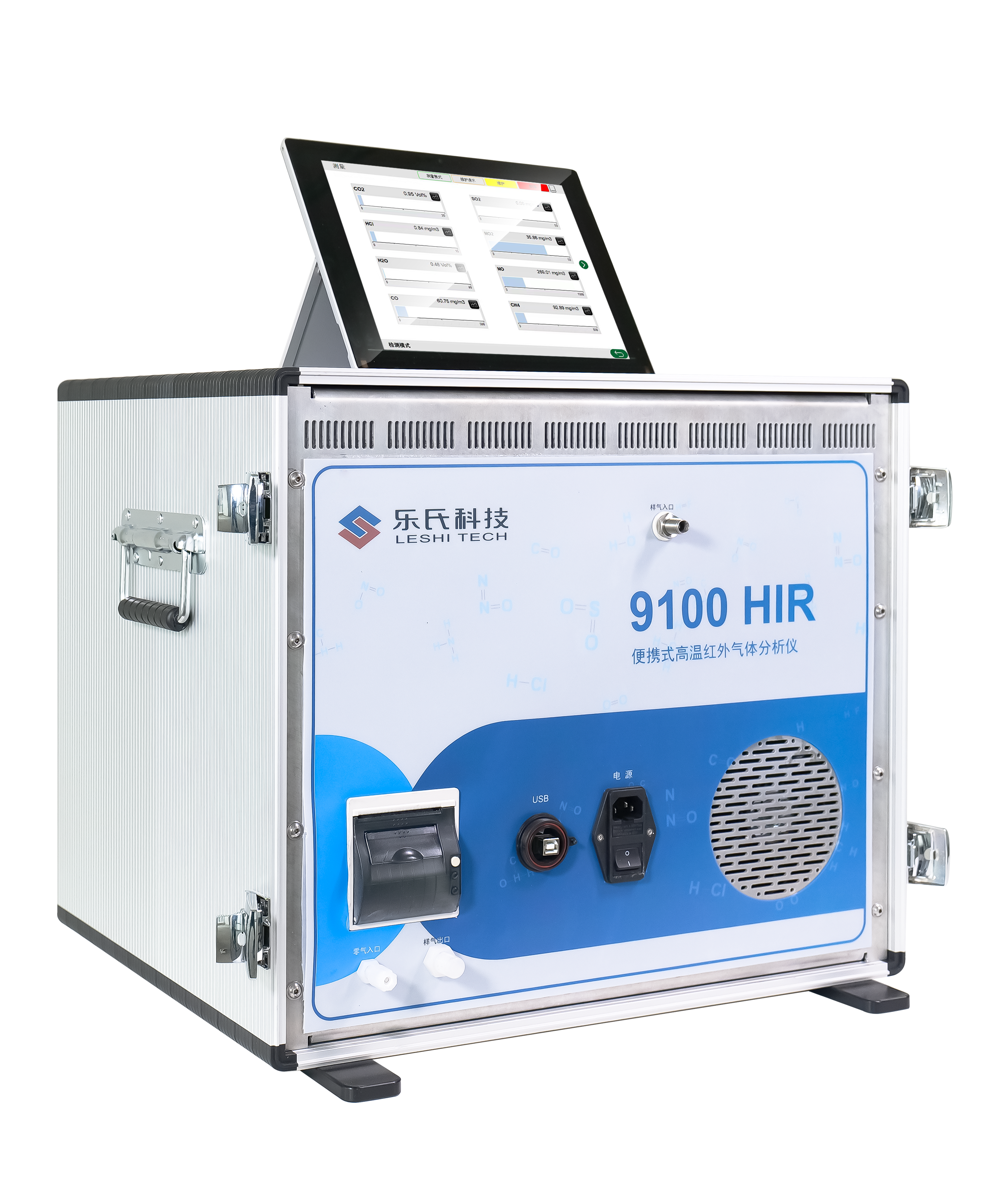 9100HIR便攜式高溫紅外氣體分析儀可以對:O2、CO、CO2、NO、NO2、N2O、SO2、CH4、NH3、H2O、HCL、CH2O、C3H8等氣體同時精準定量、定性檢測,每組測量氣體采用多段量程設計,并且量程可根據被測樣品濃度自動切換測量,分析儀測量組分的量程也可根據用戶需求進行量身定制。